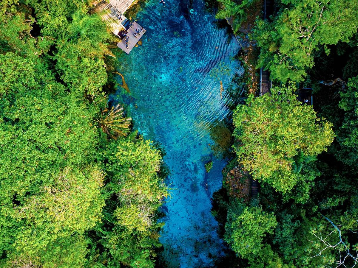 Um dos atrativos mais completos de Bonito, com lagoa cristalina e estrutura de lazer para toda a família.