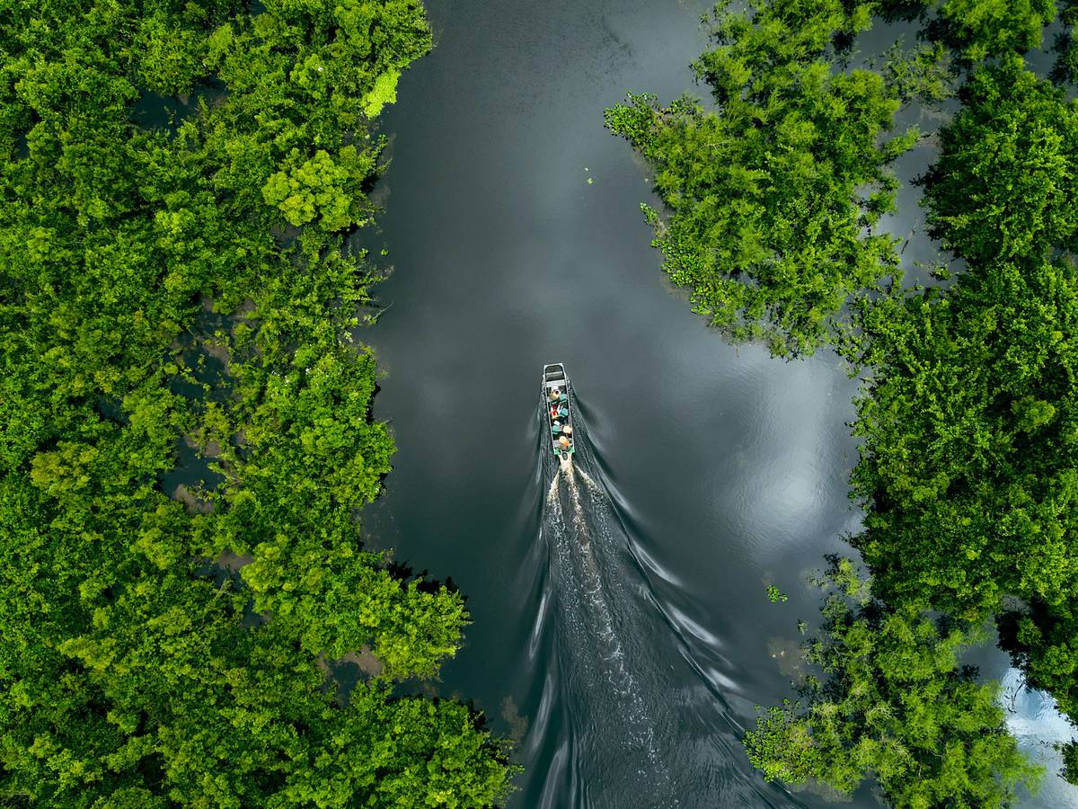 Uma experiência serena e imersiva, navegando pelas águas rasas e pelos canais do Pantanal.