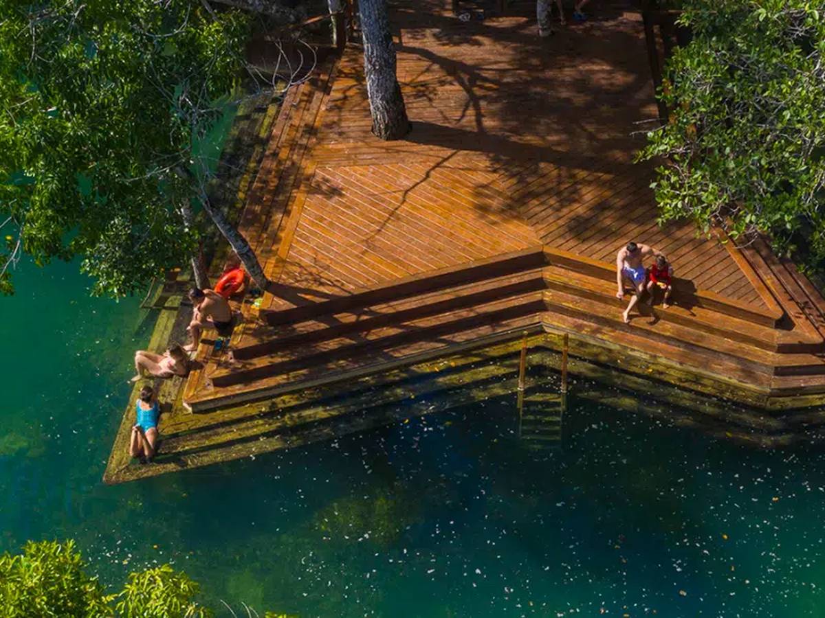 Um dos atrativos mais completos de Bonito, com lagoa cristalina e estrutura de lazer para toda a família.