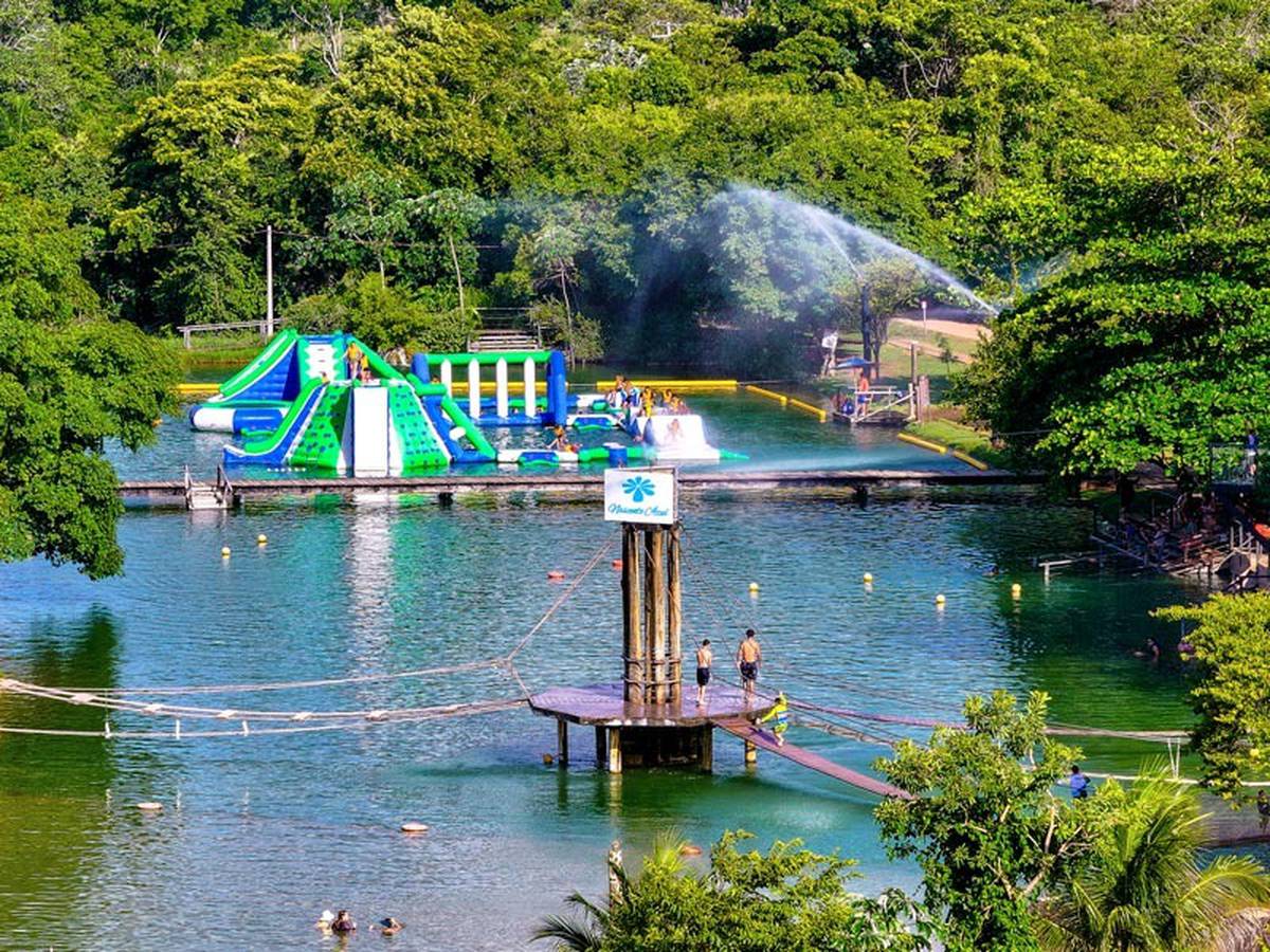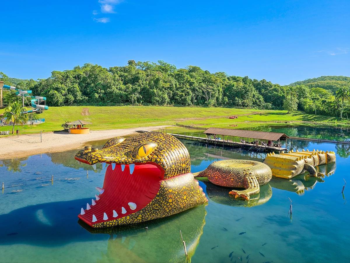 Balneário completo com circuito inflável aquático, circuito multiaventura, piscina ecológica, tirolesa aquática, praia de água doce e muito mais!